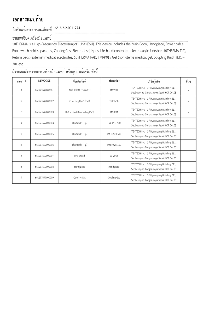 | judul | 10THERMA Thai FDA Certificate ( No. 66-2-2-2-0011774) | ||